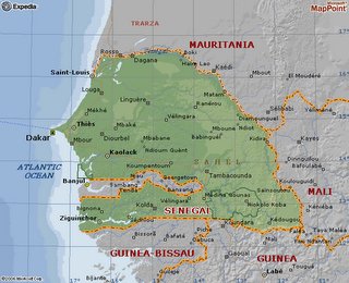 In two days they're shipping us off in pairs to villages to live for two days with current volunteers: a site visit to get a feel for what the next two years will be like. The group is 53 people, a lot bigger than i thought, but they are all really great people and that adds to the summer camp feel of it all. It's great after the three-day orientation in Philly and the two day trip to actually arrive in Africa - i was beginning to think that i'd never actually get here. My French is coming back, and here in the city everyone seems to speak it pretty well so it's great to be able to communicate with people. Can't wait to start my language training and learn Wolof and/or another local language. For those of you with maps, my site visit will be in Toumbacounda, in the East - then in some village around there. This has nothing to do with where i finally end up - they'll let me know that pretty soon.